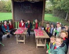 Our KS1 children had a wonderful time celebrating Sukkot, the Jewish harvest festival! 🌿✨ They helped build a beautiful sukkah, sang joyful songs, and read a special blessing together. The children also made their own Four Kinds palm to mark the celebration. Traditionally, bread and honey are enjoyed during Sukkot, but we celebrated with delicious cupcakes instead - a sweet way to end a joyful day of learning.